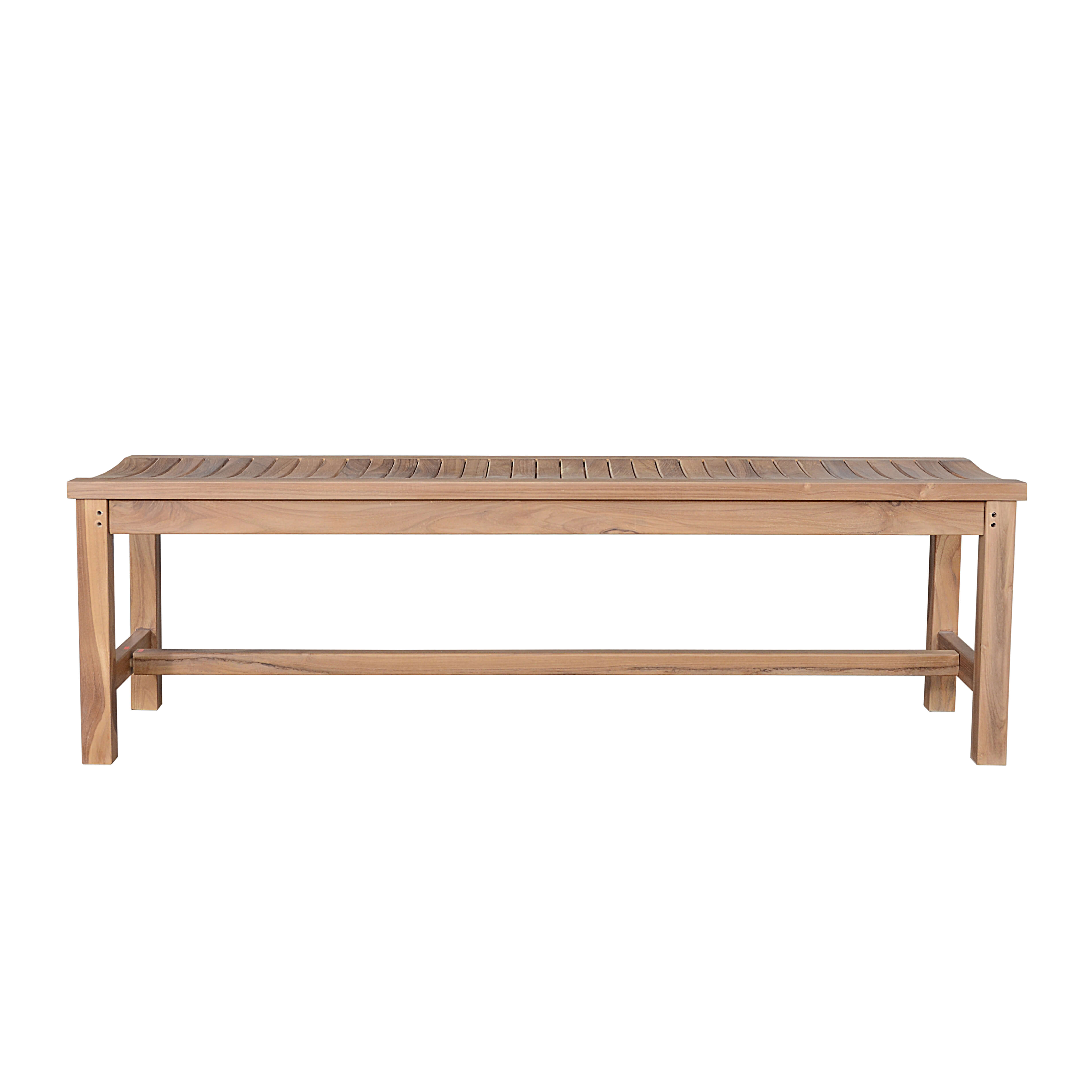 Unlike our benches and chairs with backs, the lowest point in this seat’s curve is directly in the center, allowing you to face in either direction. This bench can also be used for seating at our rectangular dining table to create an outdoor picnic dining set or in areas where a bench with a back would be just too tall. Expertly crafted from solid teak wood with mortise and tenon joinery, it is sealed in a waterbased coat for added weather protection against the elements of rain, hail or shine. Over time, the wood will weather to a beautiful silver gray patina, or occasionally scrub down with soap and water to keep in pristine condition. Add cushions with All-Weather Sunbrella Fabrics for added comfort. Quality built for generations.