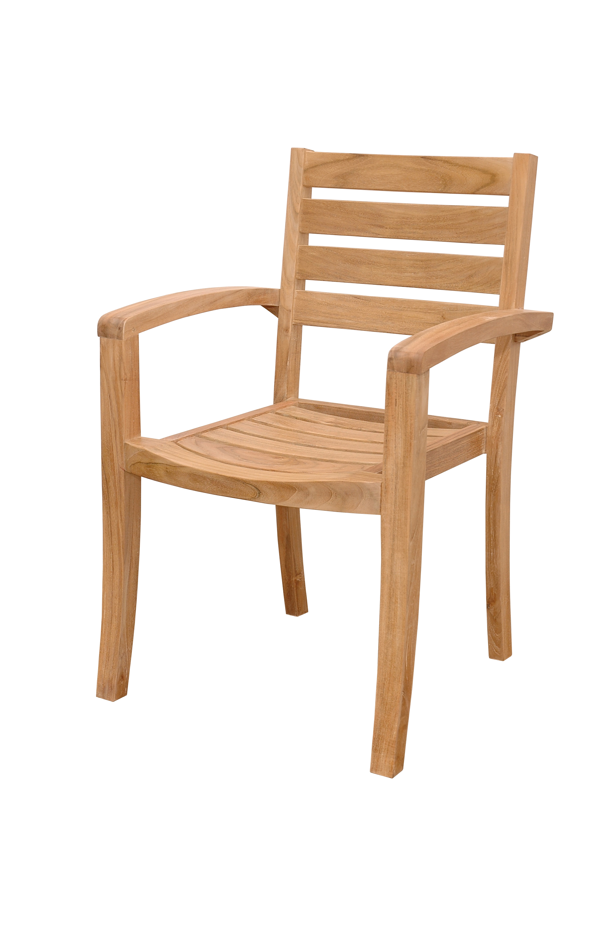 This “Modern Stacking Armchair” is a versatile and stackable teak chair perfect for the patio or yard. The stylish curvatures on this chair including its curved seat and back support make this not only a stylish modern chair, but a comfortable one. Easy for storage and movement, it can be easily stacked up to four chairs high. Place this chair in your backyard with a dining table for an outdoor dining experience. Overtime, the chair will weather into a patina grey, or scrub down with soap and water to keep in pristine condition. Arrives Fully Assembled in a set of four pieces in its natural form and color without finish.