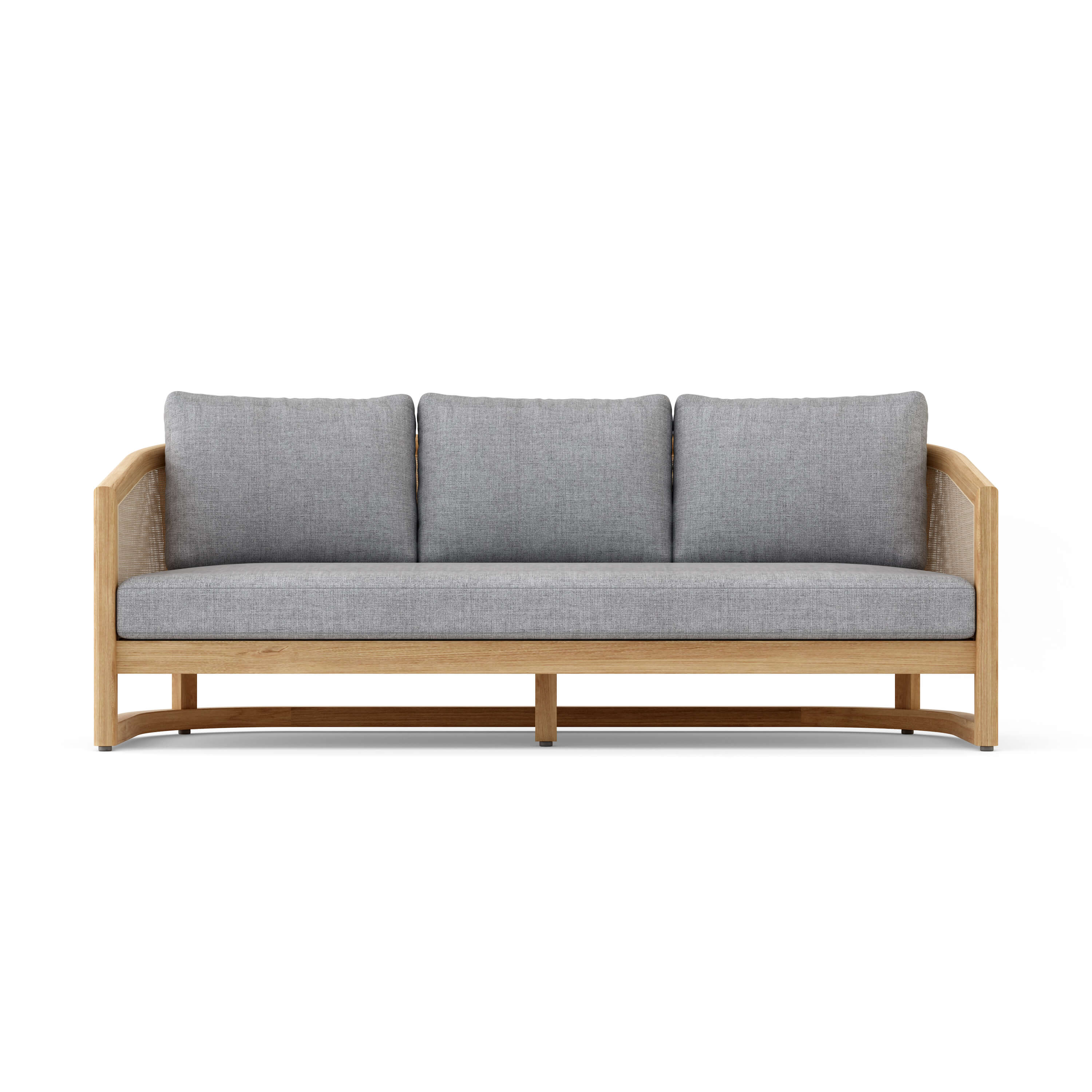With seating up to five, indulge in deep seating luxury in the comfort of your home with this four-piece Catania Deep Seating Set. Featuring an exquisite round curve design it includes two Catania Armchairs, the Catania Sofa, and the Catania Rectangular Coffee Table expertly crafted from premium grade unfinished teak and a synthetic rattan weave. The perfect materials for sustained outdoor use, it requires little to no maintenance. Also includes non-marking rubber footcaps that provides stability under any surface and six inch All-Weather Sunbrella Cushions with choice of color options, exuding luxury and comfort.