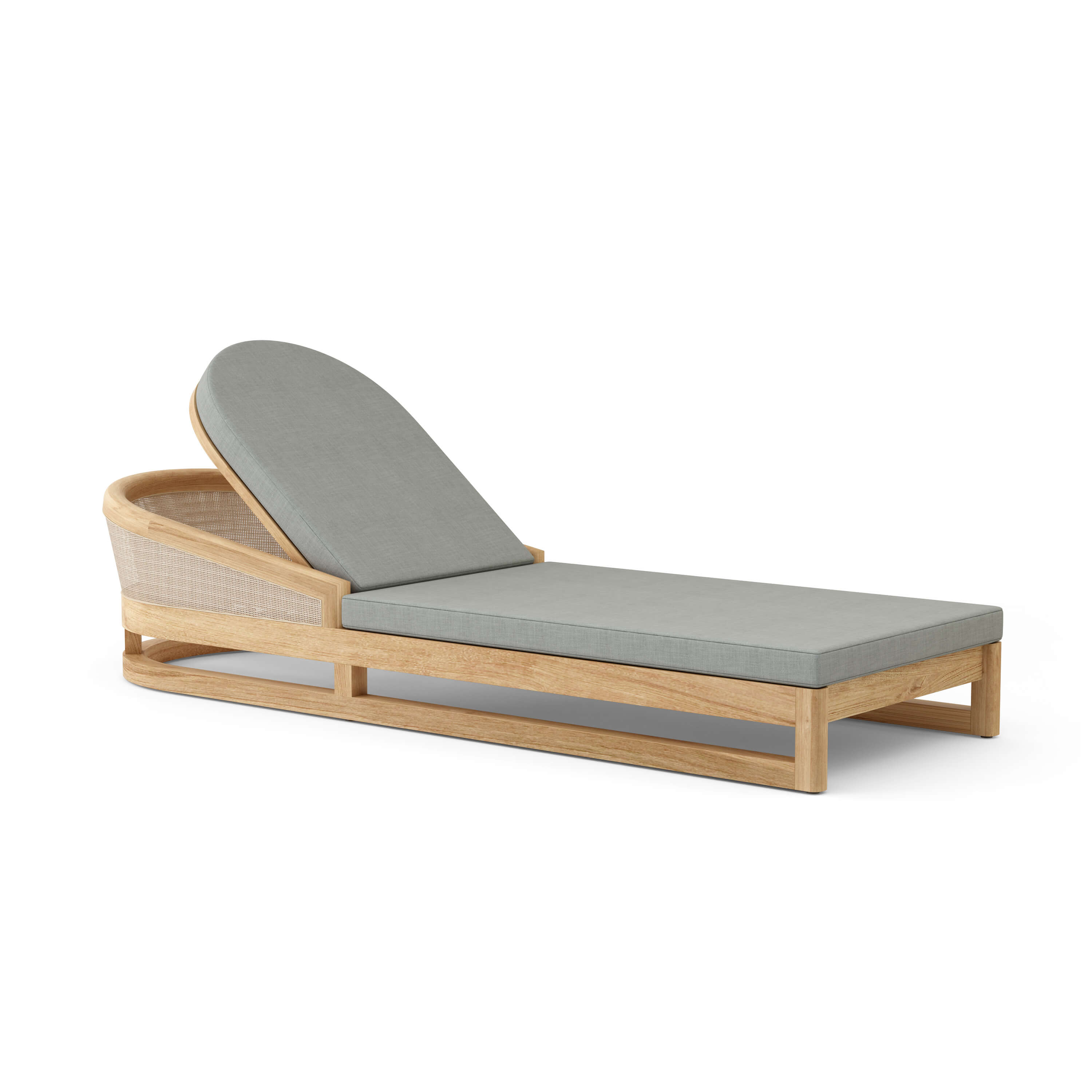 A set of two Catania Sun Loungers constructed from premium grade unfinished teak and synthetic wicker the Catania Sun Lounger is a spacious and quality built lounger perfect for the pool or patio. Featuring four seating positions including completely flat, its easily adjustable from its stainless steel support. Includes 4" thick Cushions from All-Weather Sunbrella Fabrics for added comfort, perfect for relaxing and lounging in the sun.