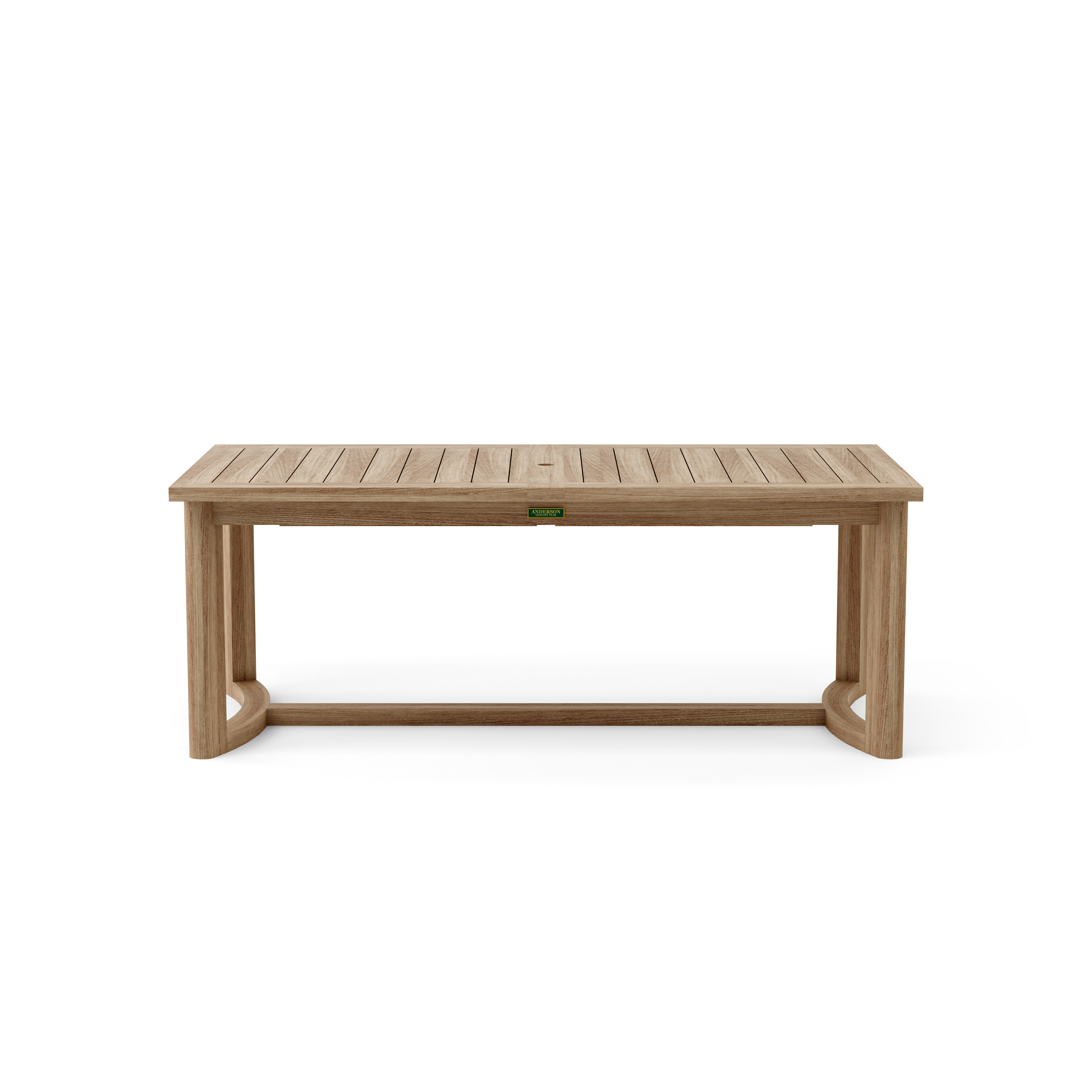 This solid teak Coronado Extension Table is the perfect large dining table for your next outdoor dinner party. Made of unfinished premium teak wood, it’s the perfect table for continued outdoor use requiring little to no maintenance. The built-in butterfly pop-up leaf enables you to open or close your table in less than 15 seconds, and the table can be extended with 1 or 2 leaves depending on the size needed, seating up to 10 to 12 people comfortably. Simply slide open one or both of the extension leaf’s on either end to reveal two extra leaf’s in the middle. Includes umbrella hole with wooden plug when not in use.